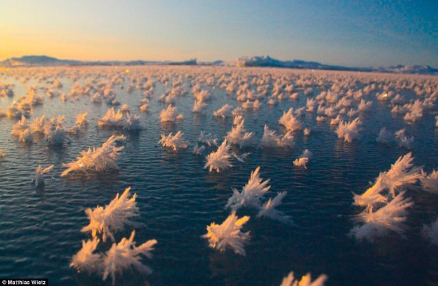 Тисячі таких квіточок погойдуються на поверхні моря, і це надзвичайно красиво. Утворюються вони за температури близько -22 градусів за Цельсієм та слугують домівками для мікроорганізмів.