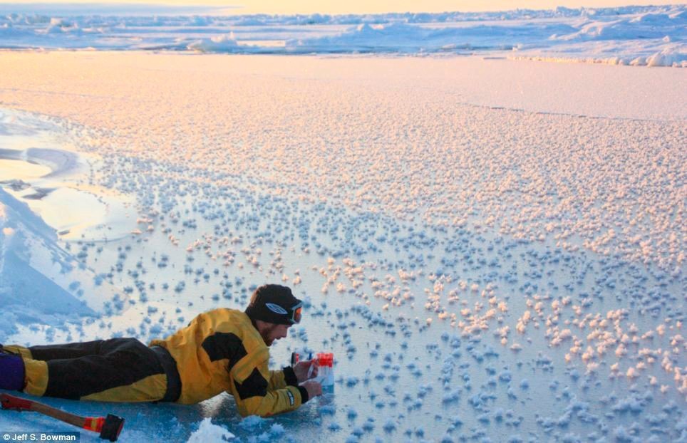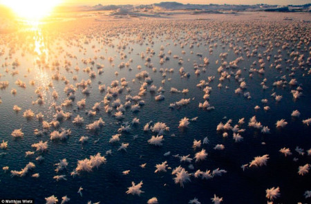 Тисячі таких квіточок погойдуються на поверхні моря, і це надзвичайно красиво. Утворюються вони за температури близько -22 градусів за Цельсієм та слугують домівками для мікроорганізмів.
