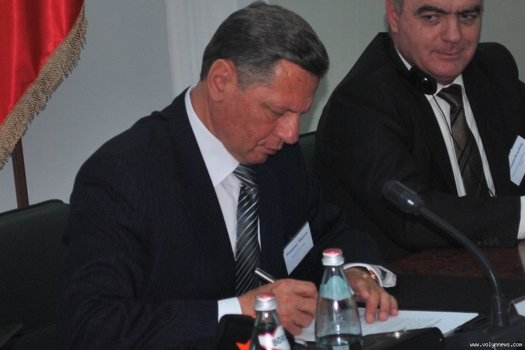 Луцький міський голова Микола Романюк підписує угоду про співпрацю із Радою Європи та Міністерством культури України.