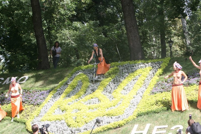 Як пишуть FEMEN у своєму блозі, вони "викосили до непізнаваності головну агіт-клумбу України, прорубавши тим самим свіжу просіку в нетрях затхло-казенного формату святкування ювілею Незалежності України».
