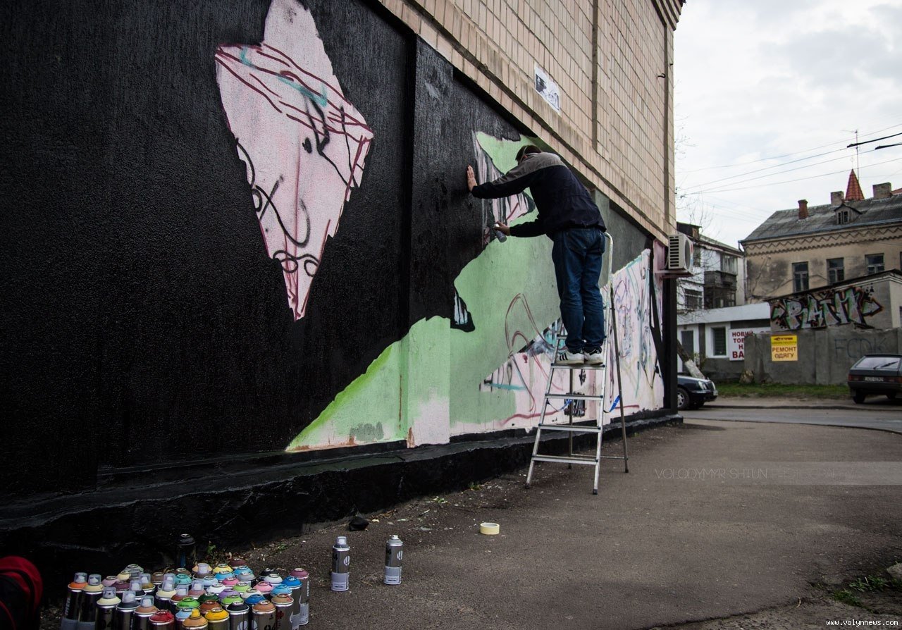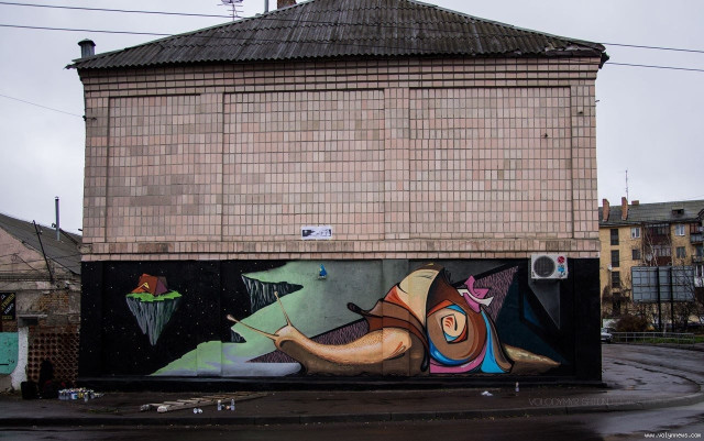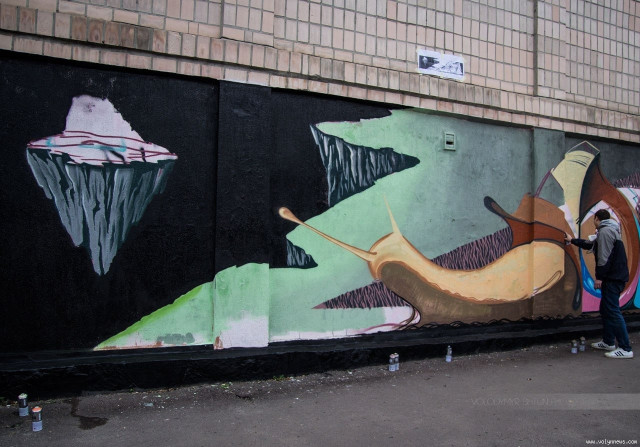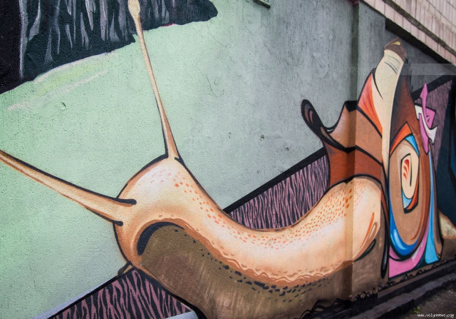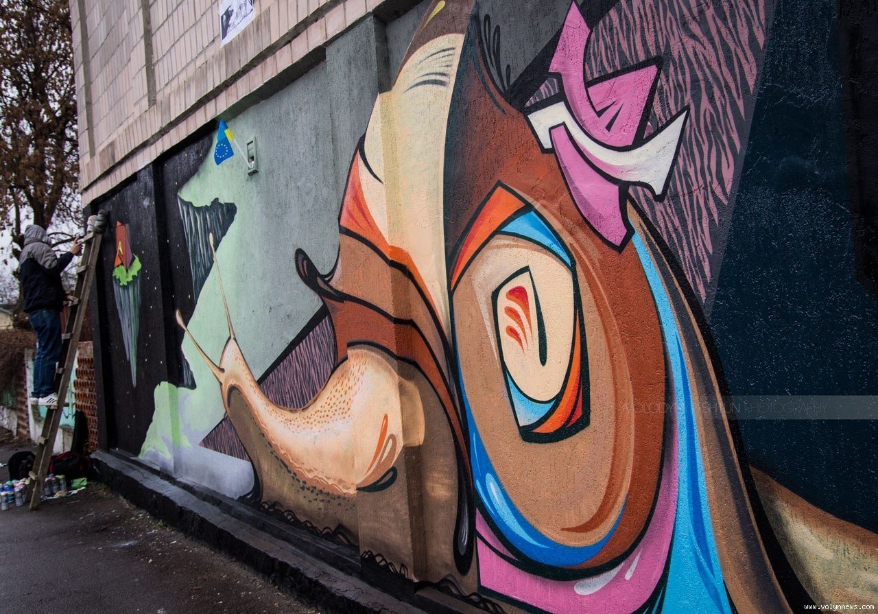 Як на луцькій стіні з’явився равлик. ФОТОРЕПОРТАЖ