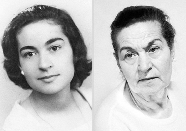 На деяких диптихах показана різниця у віці до 60 років. Дуже цікаво дивитися, як саме з роками змінилася людина. Портрети дають дивне відчуття - ви, здавалося б, дивитеся на абсолютно інше обличчя, але при цьому розумієте, що це все та ж людина. Проте, правду кажуть, що очі завжди залишаються молодими.