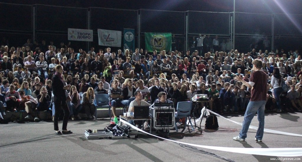 На приємне здивування організаторів дійства – СМГО «Молодіжна платформа» – нічне кіно у Луцьку зібрало чимало глядачів. Місця не вистачило навіть на трибунах стадіону, тож кінолюбителі вмощувалися просто на траві та сходах. Схоже, вони до цього готувалися, адже були озброєні ковдрами, карематами, гарячими напоями, теплим одягом.