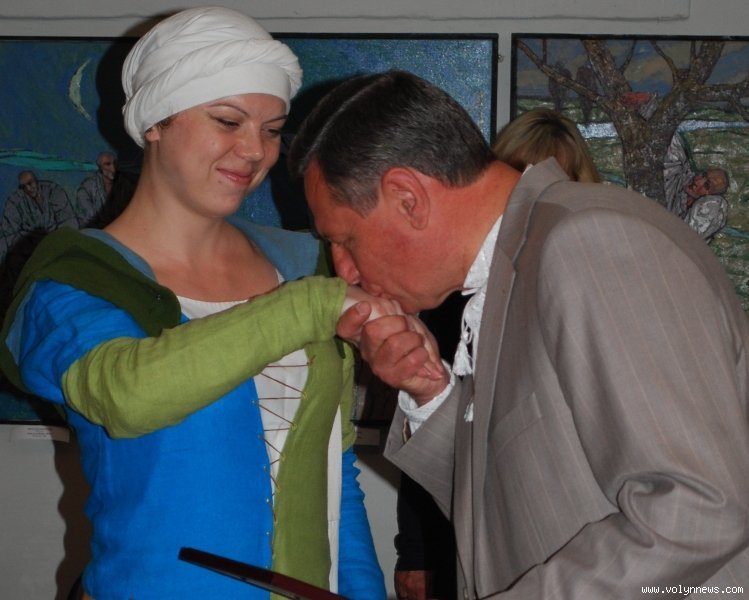 Тим часом Микола Романюк джентельменствував – цілував руки дамам, вбраним у середньовічний одяг.