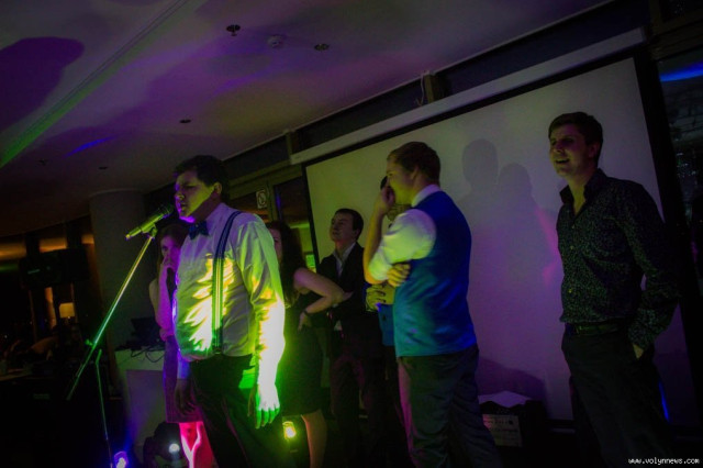 Розважали присутніх лучани, яким вдалось «насмішити» Володимира Зеленського та Євгена Кошового на 5 тисяч гривень, чемпіони Першої Української ліги КВН - команда КВН «Замок Любарта».