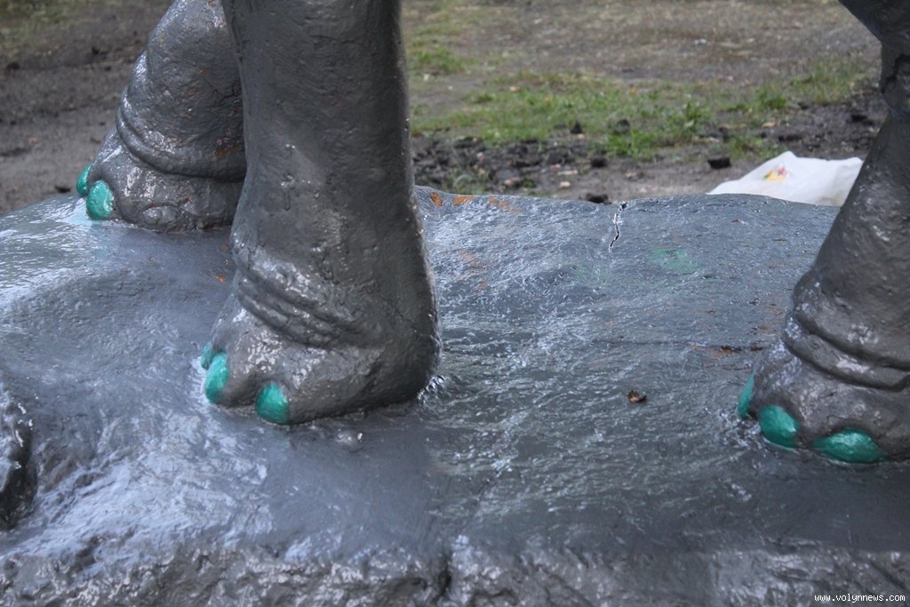 Пам'ятник слону у Луцьку знову змінив колір. Тепер він - сріблястий.