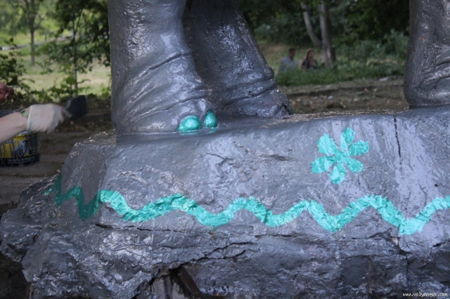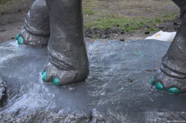 Проте учора слона знову пофарбували. Відтепер він набув «сріблястості» з елементами бірюзи.
