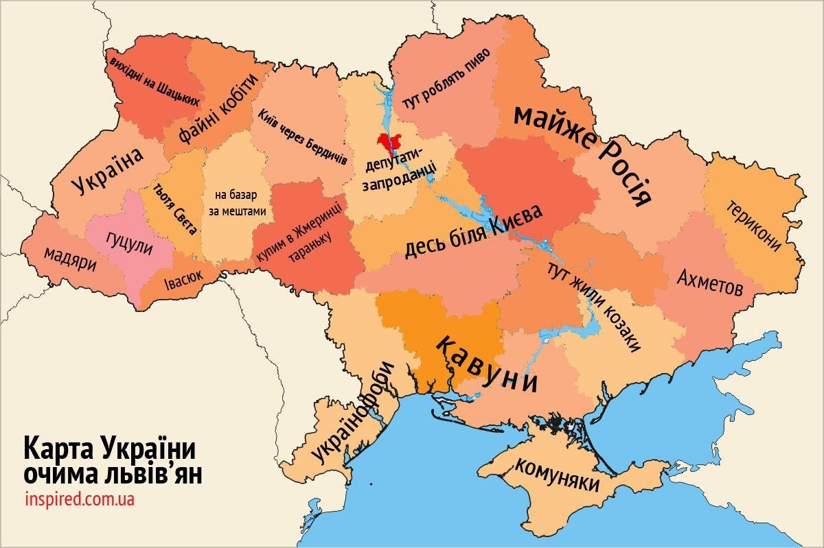 Сайт Inspired опублікував карти стереотипів України - з точки зору жителів різних її регіонів.