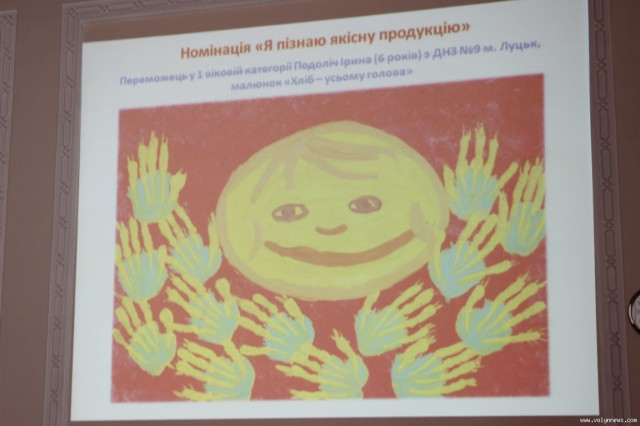 Робота дівчинки «Хліб – усьому голова» перемогла у номінації «Я пізнаю якісну продукцію» у віковій категорії 5-8 років.