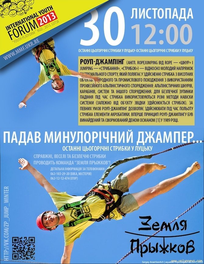 Останні цьогорічні стрибки у Луцьку з комічною назвою «Падав минулорічний джампер», відбудуться 30 листопада та 1 грудня у рамках Міжнародного молодіжного форуму.