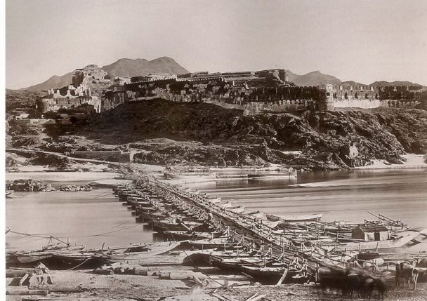 Наступні дві фотографії оскаржують між собою право називатися першою фотографією Азії. На першому фото, яке зробили у 1861-му році, зображений понтонний міст через річку Інд.
