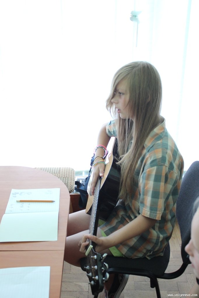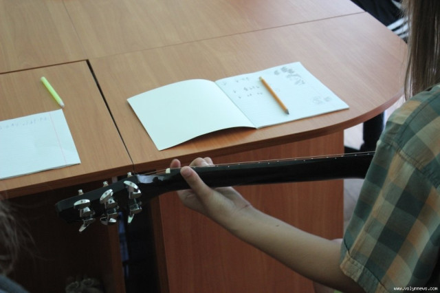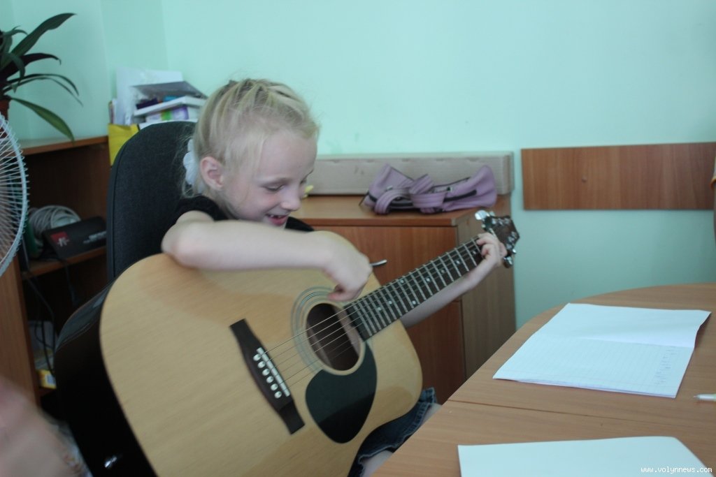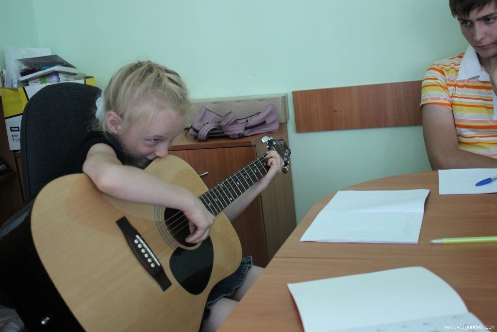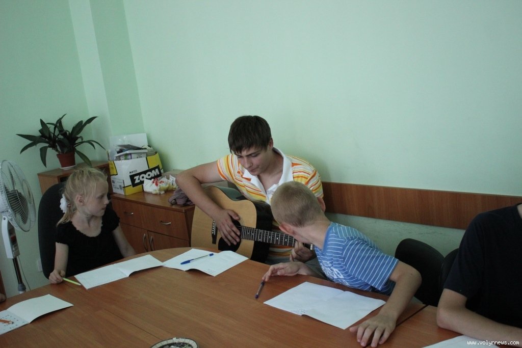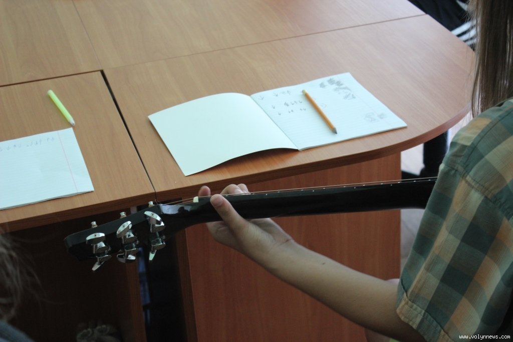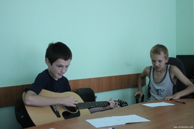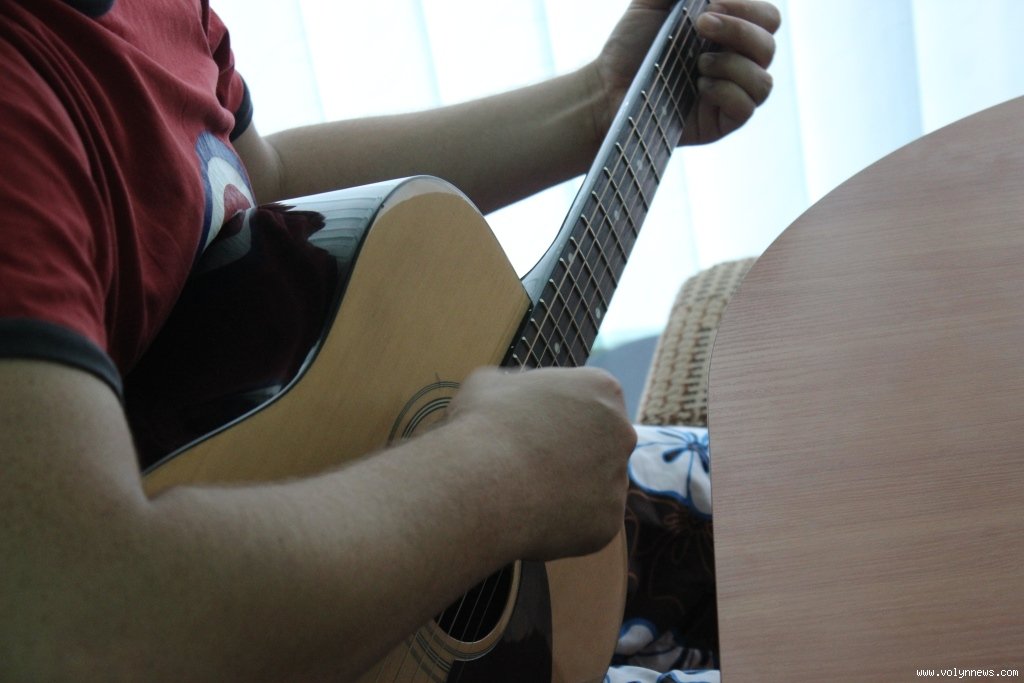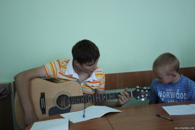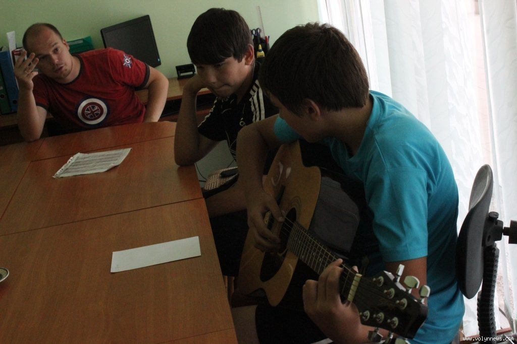 Навчання гри на гітарі організував Луцький міський центр соціальних служб для сім’ї, дітей та молоді. Юнаків і юнок, у яких менше можливостей для цікавого дозвілля, ніж в однолітків, навчає Тарас Рудинець. Він пояснює найпростіші основи гри на гітарі, так, сьогодні вивчають бій.