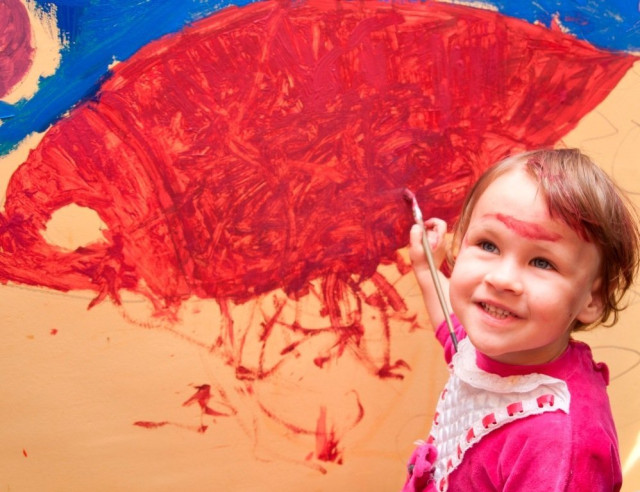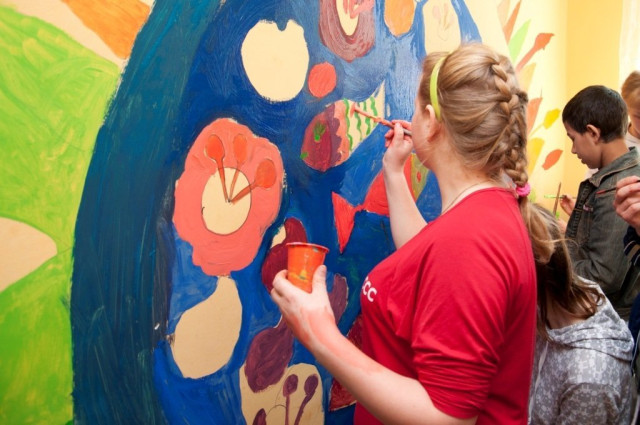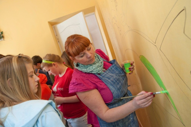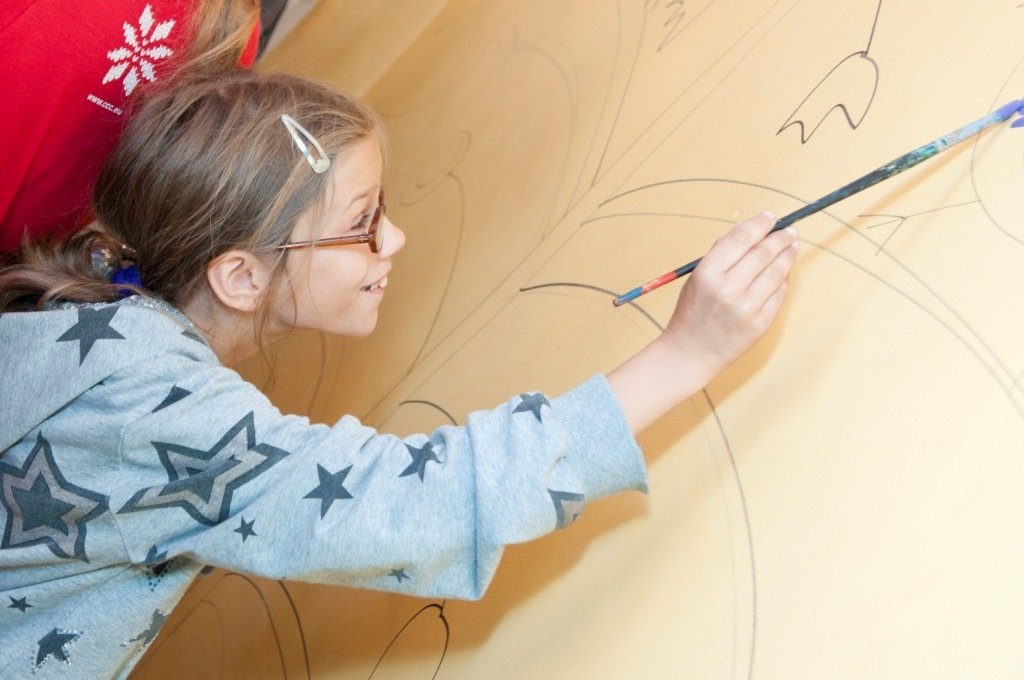А художниця Тетяна Мялковська разом із арт-студією «Пятерня» змогли відкрити внутрішній світ дітей, організувавши свято малюнку. Фарба була скрізь: на одязі, рученятах малечі, на підлозі, навіть на стінах. Яскраві фарби, різноманітні пензлики, весела музика й усмішки «намалювали радісну картину кольорового майбутнього». Діти назвали свої шедеври «Озеро Світязь», «Дерево бажань», «Ю+В».