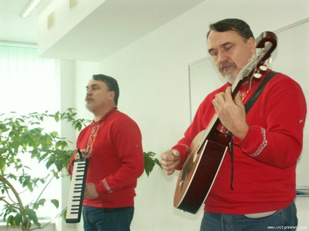 Обоє, як завжди, однаково вдягнені. Цього разу, щоправда, у синіх джинсах і червоних кофтинах із елементами вишивки. Обоє ‒ на шиях із ручками, що, мабуть, є ознакою всіх письменників.