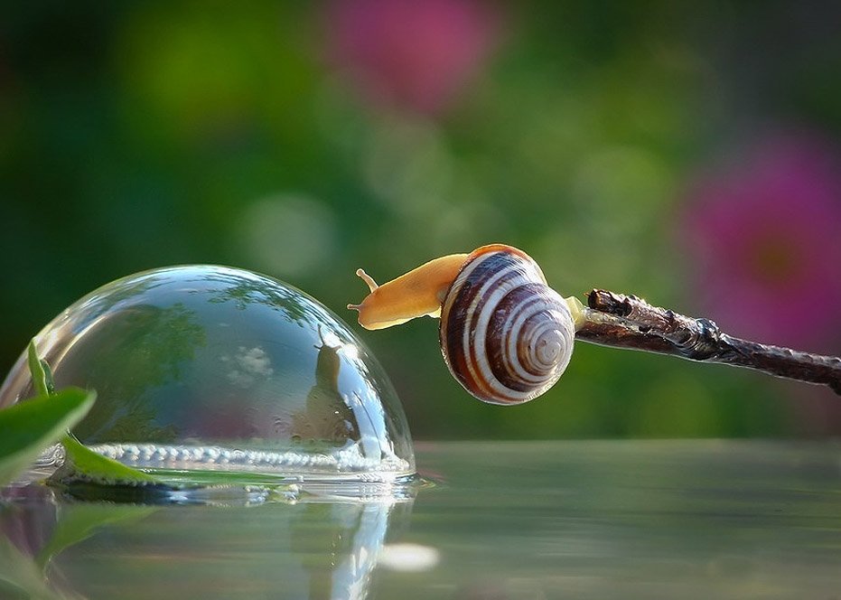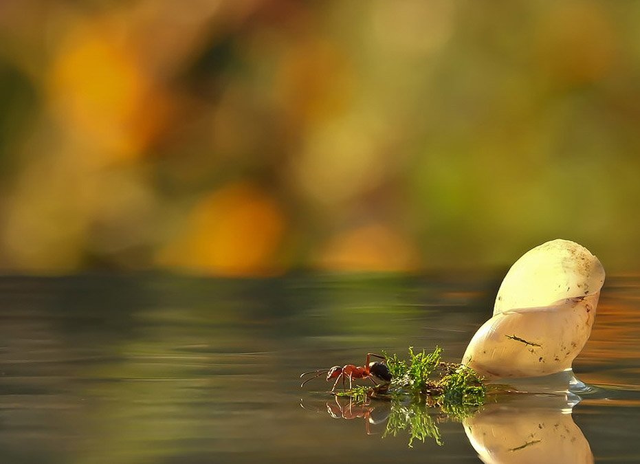 І не просто макрофотографія, а якісна та майже казкова макрофотографія. Його знімки - немов ілюстрації до доброї дитячій книжці про комах, в якій забавні равлики і сміливі мурашки досліджують лісові простори, підкоряючи величезні для них гриби і насмілюючись дивитися на власне відображення в річках і озерах
