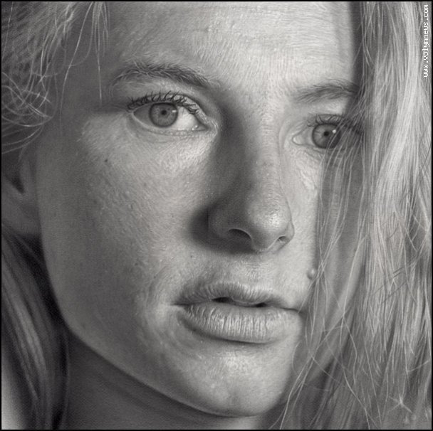 Використовуючи фото лише для натхнення, він робить ескіз основних пропорцій, а потім олівцем малює шар за шаром, доки не вийде надзвичайно реалістичний портрет.