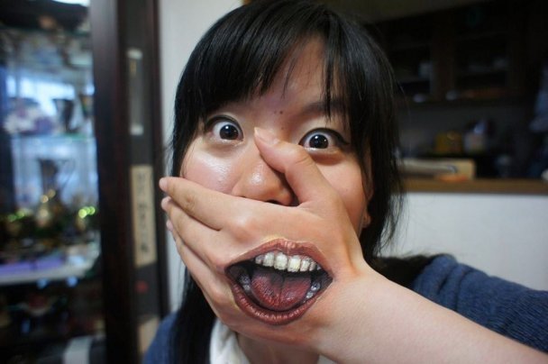 Японка малює моторошні картини на тілі. Таким дивним хобі дівчина почала займатися під час вступних іспитів до університету.