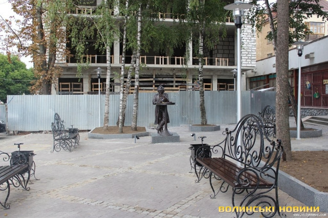 Так, перший заступник міського очільника заявив: «Зараз всі так активно обговорюють скульптуру, яка стоїть в центрі скверу. Хтось в цьому чоловіка бачить відомого волинського письменника Костя Шишка, хтось – ще когось. Хто пам’ятає, на тому місті колись було кафе «Лакомка», де за чашкою кави любили збиратись представники луцької інтелігенції: письменники, художники, поети. Так, ось, насправді, ця скульптура – це уособлення людини-інтелігента».