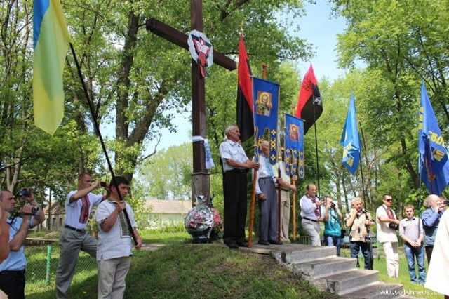 Уже декілька років поспіль патріоти з Волині та Рівненщини моляться за упокій душ загиблих захисників держави біля хреста борцям за волю України, де священнослужителі й цього дня відправили заупокійну літію.