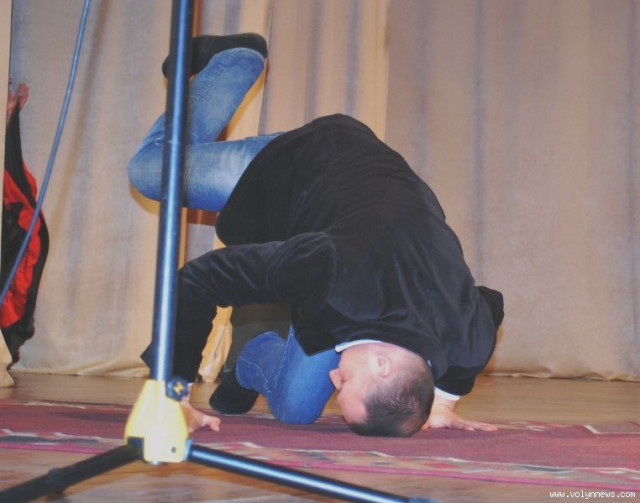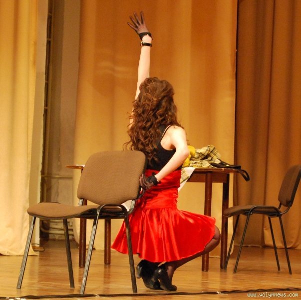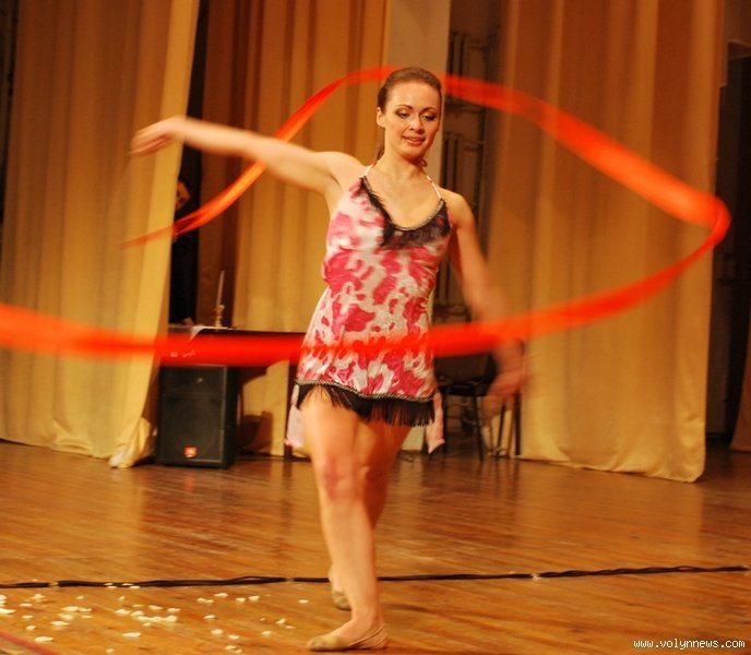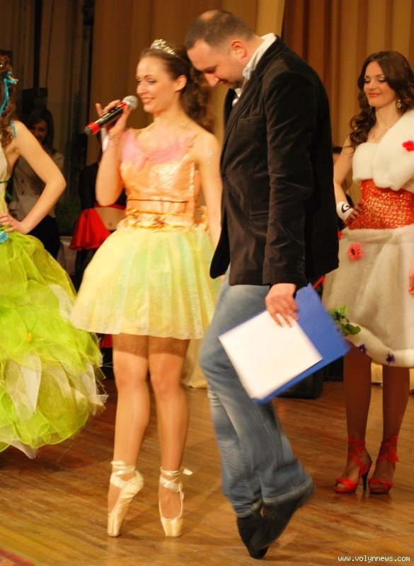 Анна Фаізова з Волинського національного університету, що вийшла в паперовій сукні та пуантах так надихнула ведучого Котищука, що він і сам намагався виконати декілька па і хоча б секунду простояти на одних лише пальцях ніг.