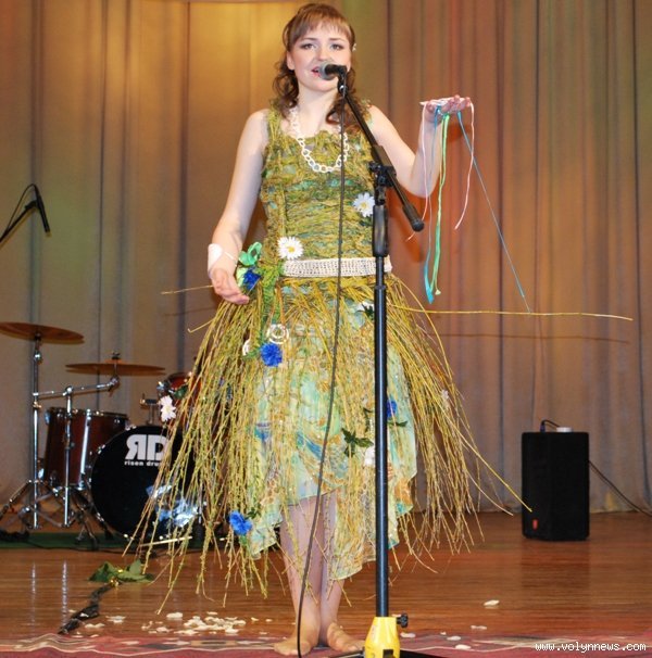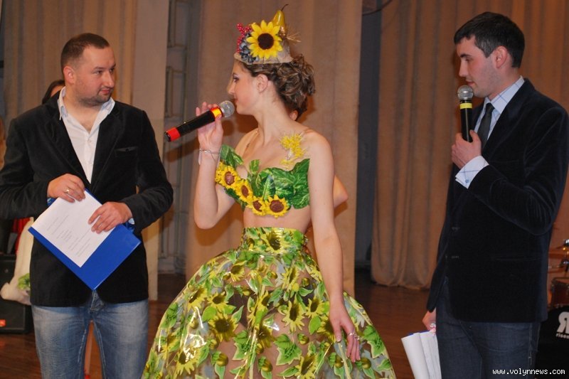 Ірина Зданевич з Луцького педагогічного коледжу виготовила сукню з прикрас для квіткових букетів, а Віра Рудзевич з Волинського технікуму Національного університету харчових технологій пошила елегантну сукню з синтепону.