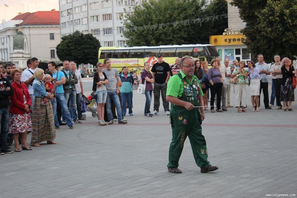 Послухати якісну музику, просто неба, зібралося досить багато лучан, незважаючи на те, що про концерт стало відомо лише за день до виступу. Перед початком концерту музикантів, згідно з українською традицією, частували хлібом та медом.