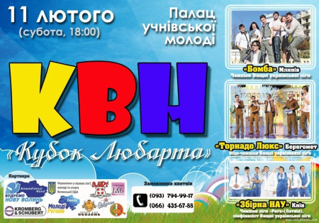 Найочікуваніша для любителів КВН гра року відбудеться 11 лютого о 18:00 в Палаці учнівської молоді міста Луцька. Саме цього вечора на одній сцені зберуться кращі команди КВН України, щоб позмагатися за «Кубок Любарта-2012».