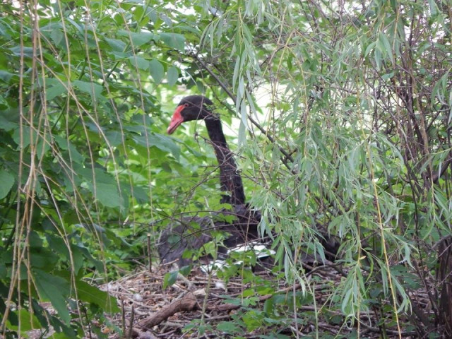 За словами працівників звіринця, на яйцях в основному сидить самиця. Самець же турботливо оберігає її спокій, а якщо треба – підміняє у гнізді. Варто їй тільки видати особливий, зрозумілий тільки йому вигук, лебідь поспішає на острівок.
