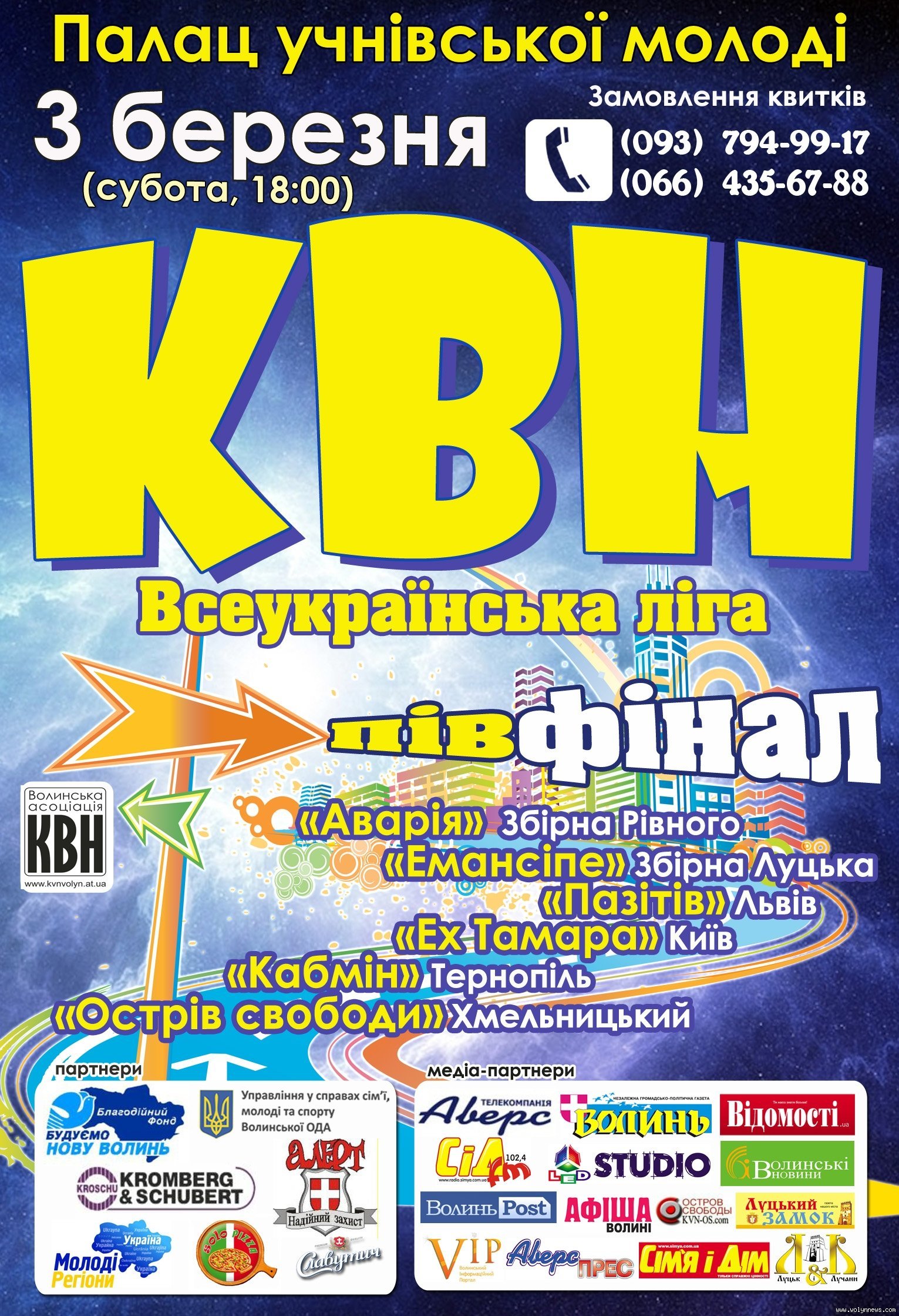 Всеукраїнська ліга КВН «Волинь» після зимових «канікул» розпочинає ігри сезону. Перша півфінальна гра відбудеться 3 березня о 18:00 в Палаці учнівської молоді Луцька.