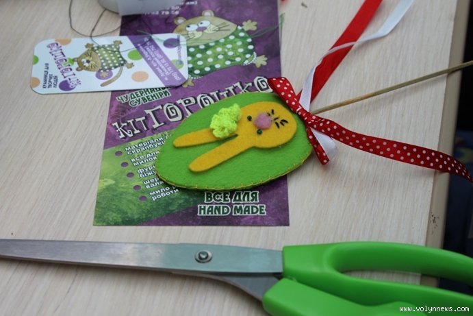 Спочатку вироби викроювали, потім зшивали та декорували і за годину у руках кожного був чудовий подарунок. Захопилася справою навіть шестирічна Соломійка, яка прийшла разом із сестрою. Задоволені лишились всі, оскільки процес декорування відбувався у дружній та творчій атмосфері.
