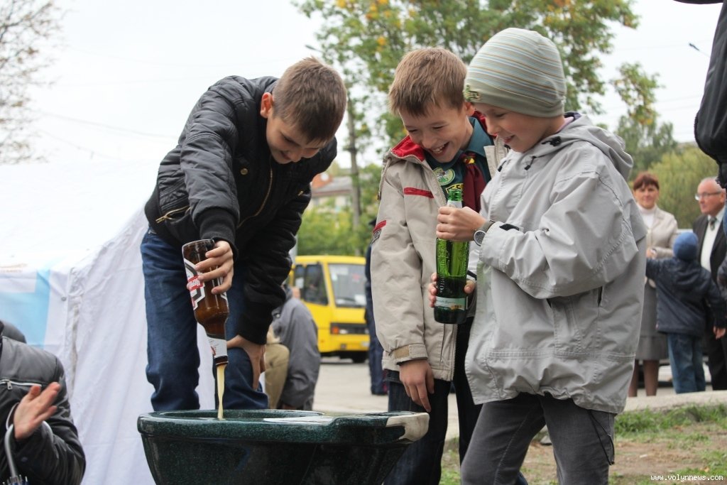 Вилити вміст пляшок з різними видами алкогольних напоїв в унітаз запропонували юним лучанам під час Національного фестивалю вареника, що був поєднаний з Днем тверезості.