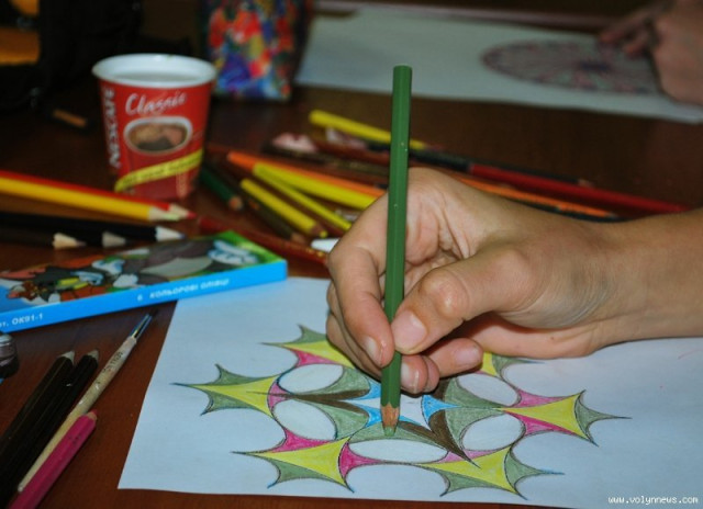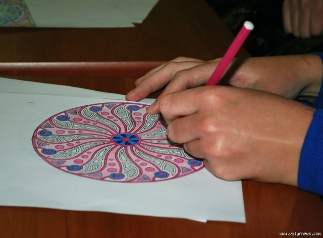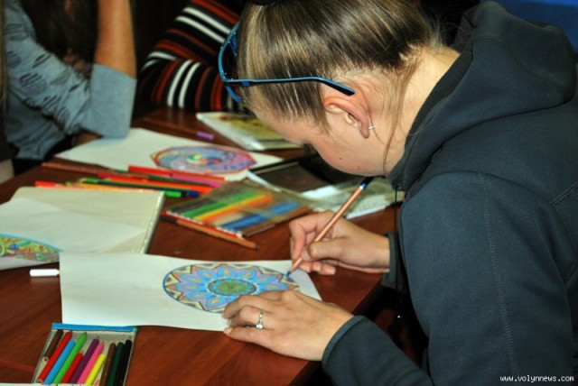 Заняття з арт-терапії провели у Луцьку. Учасників тренінгу вчили створювати власну мандалу.