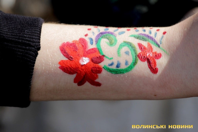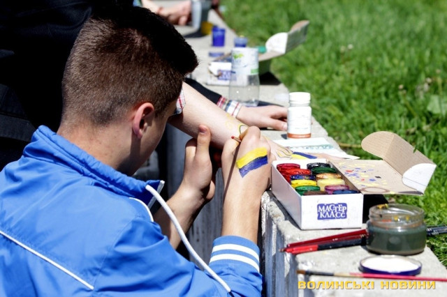 Так, усі небайдужі лучани, від малого до старого, малювали здебільшого на обличчях та руках європейські та українські прапорці та народні орнаменти. Для боді-арту використовували гуаш.
