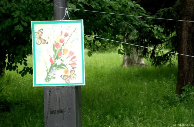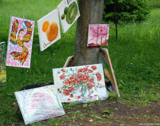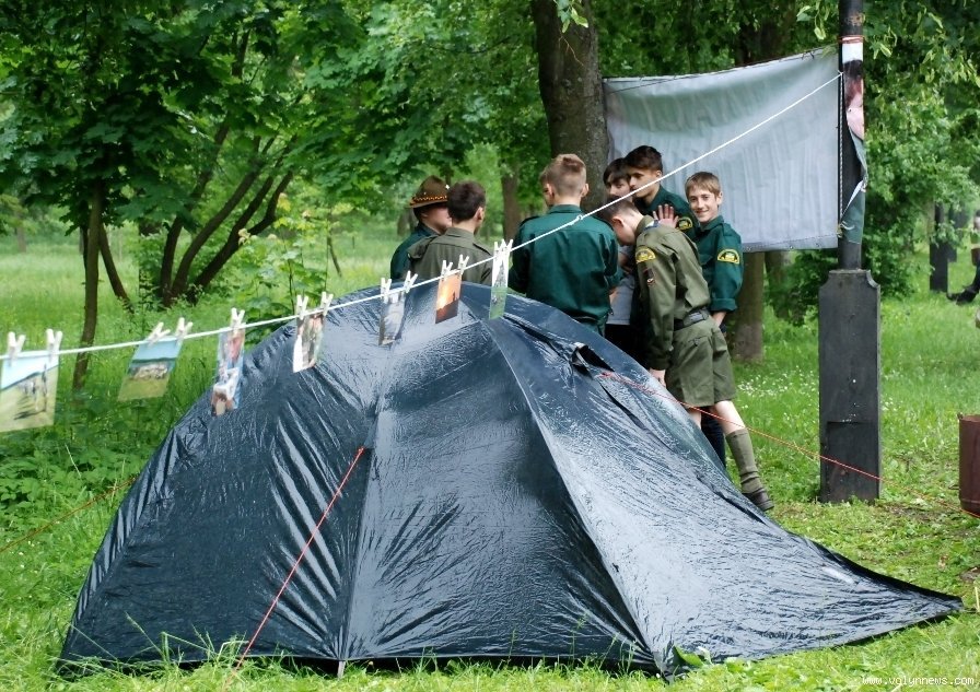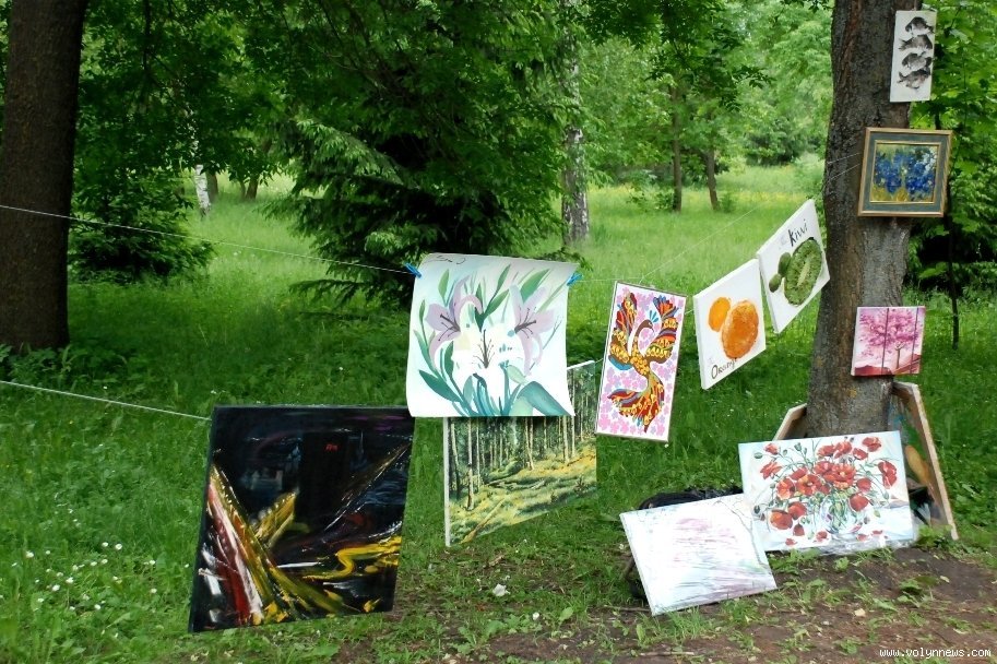Неподалік від сцени - виставка картин, а також зі своєю палаткою розташувалися пластуни.
