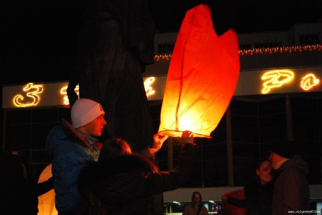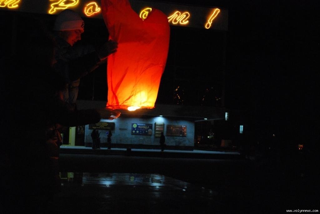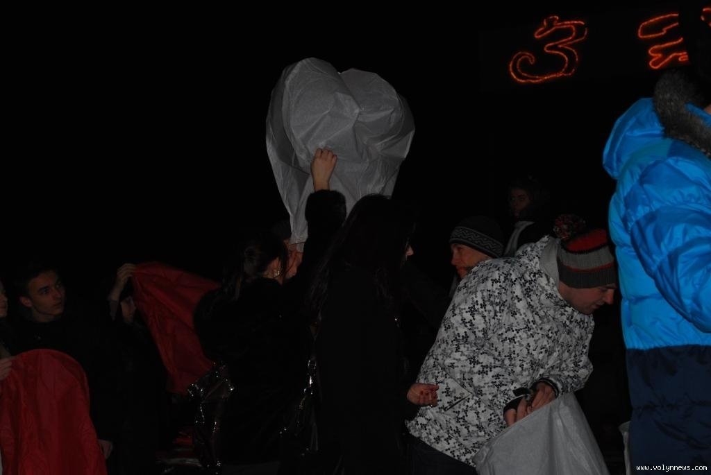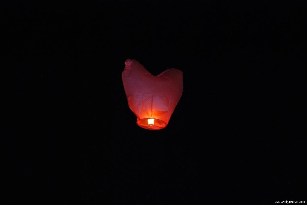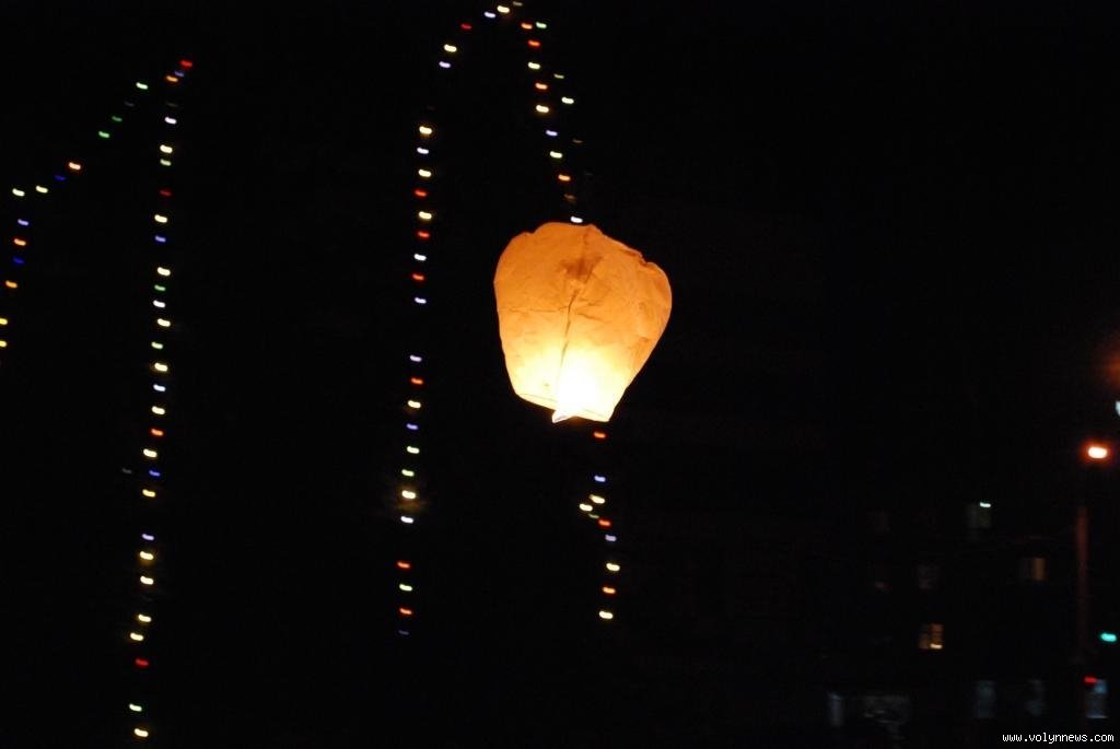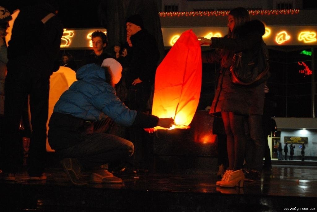 Кілька десятків молодих лучан зібралися на Театральному майдані для того, аби засвітити небесні ліхтарики.