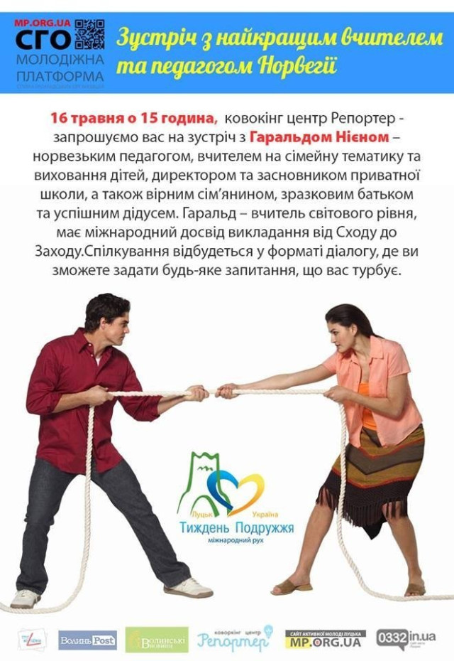 Так, зустріч з Гаральдом Нієном – норвезьким педагогом, вчителем на сімейну тематику та виховання дітей, директором та засновником приватної школи, а також вірним сім’янином, зразковим батьком та успішним дідусем - відбудеться у Луцьку.