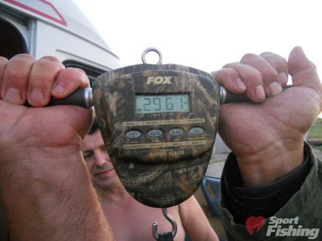 Після виважування сазана помітили в спеціальний карповий мішок, щоб вона відновила сили. А потому рибину зважили. На вагах висвітило: 29,610 кілограма.