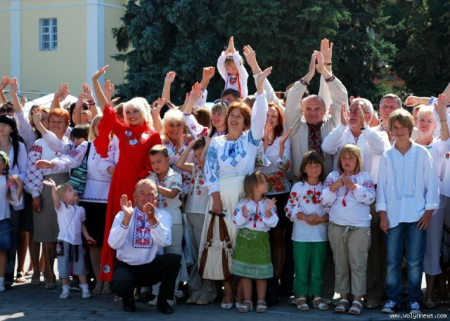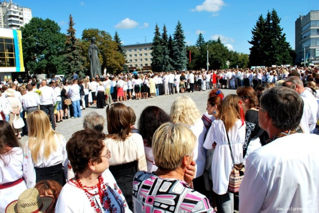Опісля жителі Луцька вибудували найбільшу в Україні 20-ку власними тілами у вишиванках. Цілі сім’ї приходили у національних сорочках. Українські вбрання одягали навіть новонароджені.