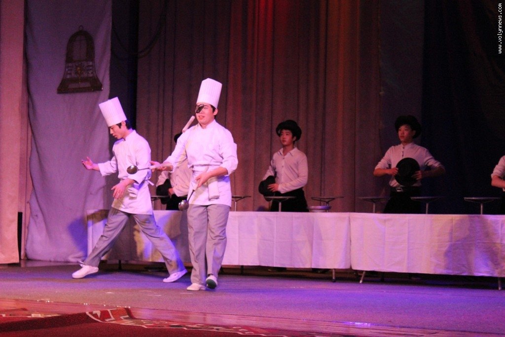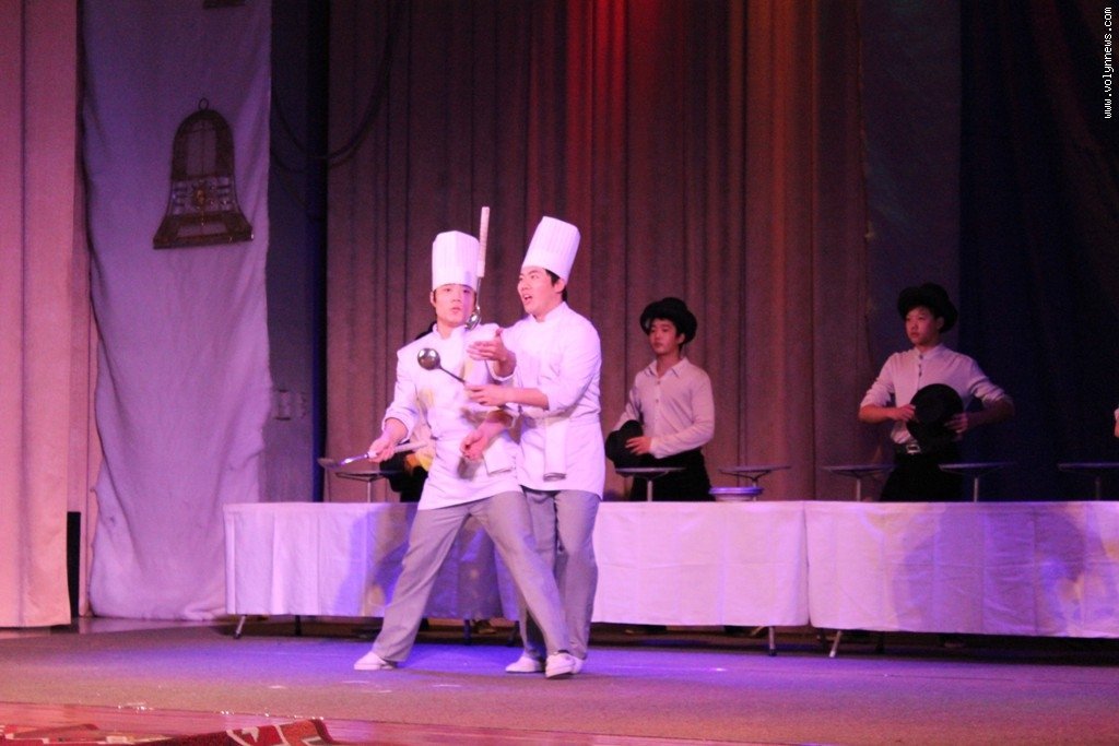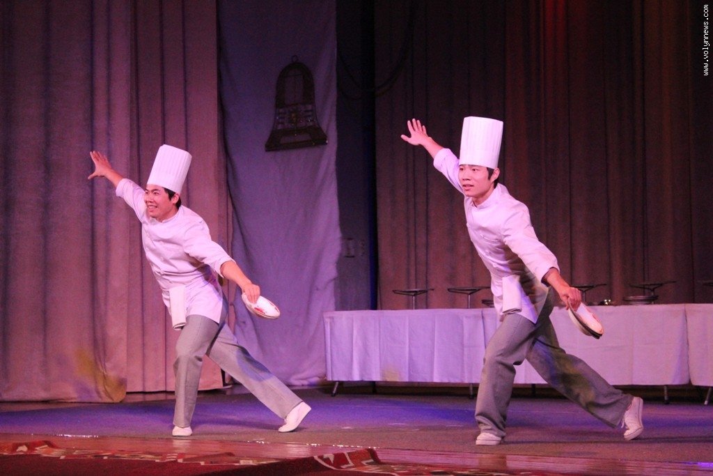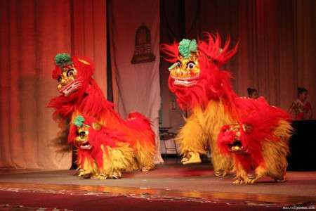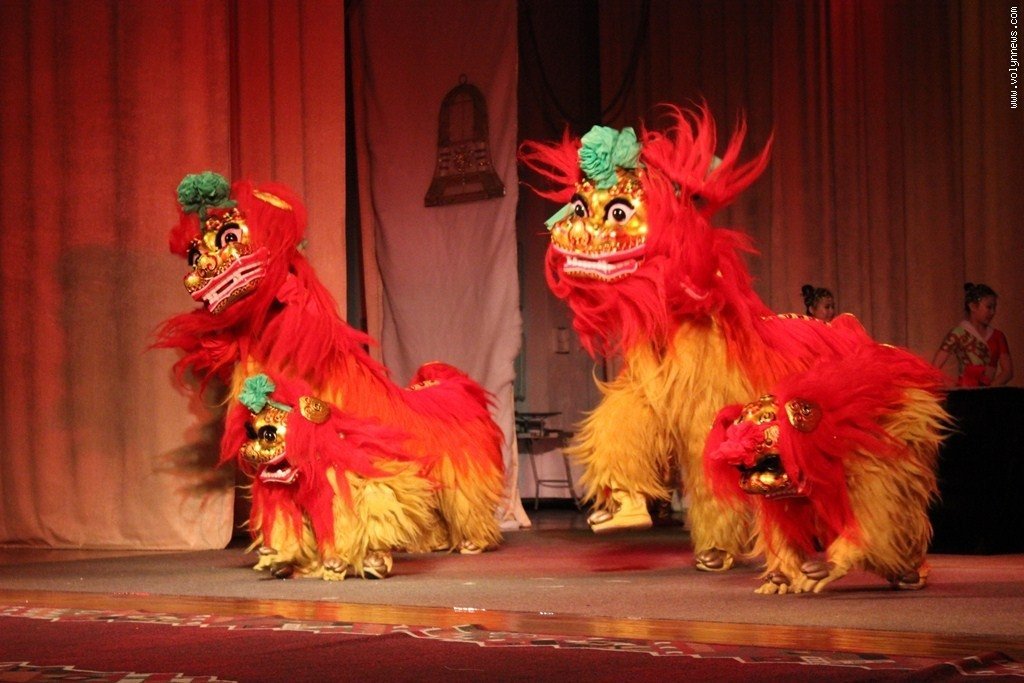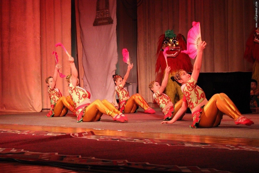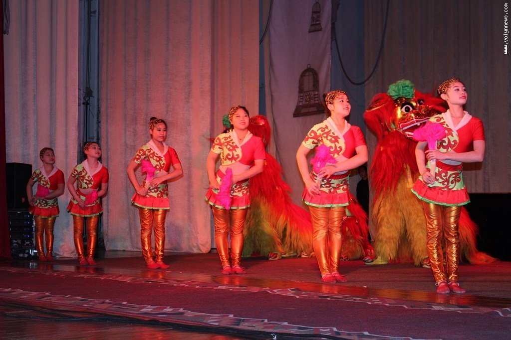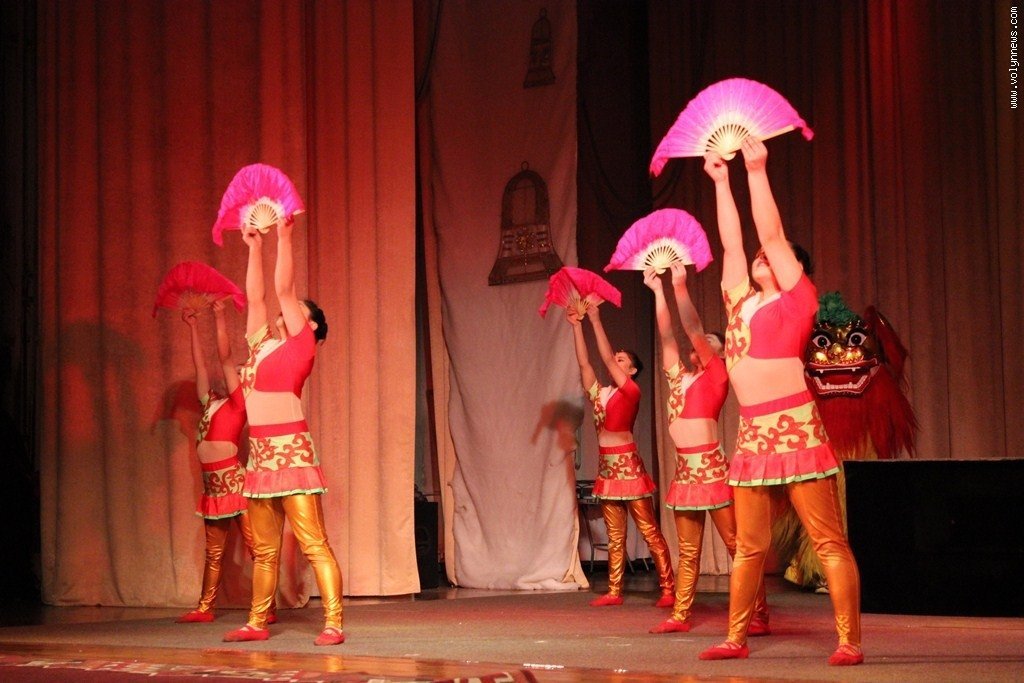Спочатку глядачів вразили барвисті дракони та дівчата з віялами, які танцювали на сцені під типові китайські музичні мотиви.