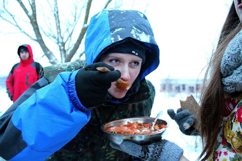 Після розваг хлопці та дівчата частували гостей смачним українським борщем та святковим тортом.