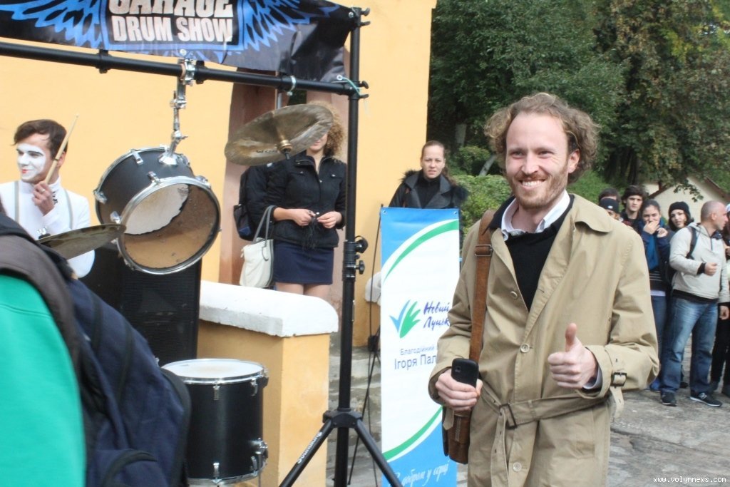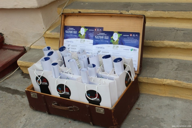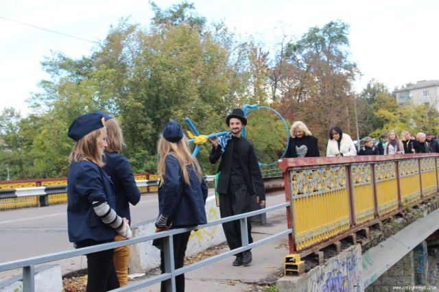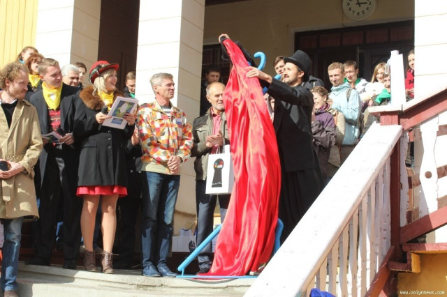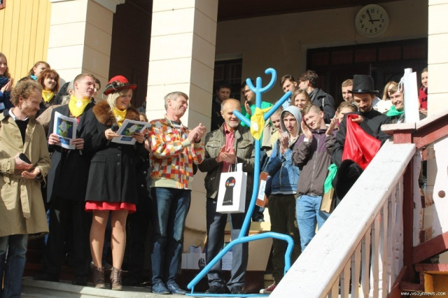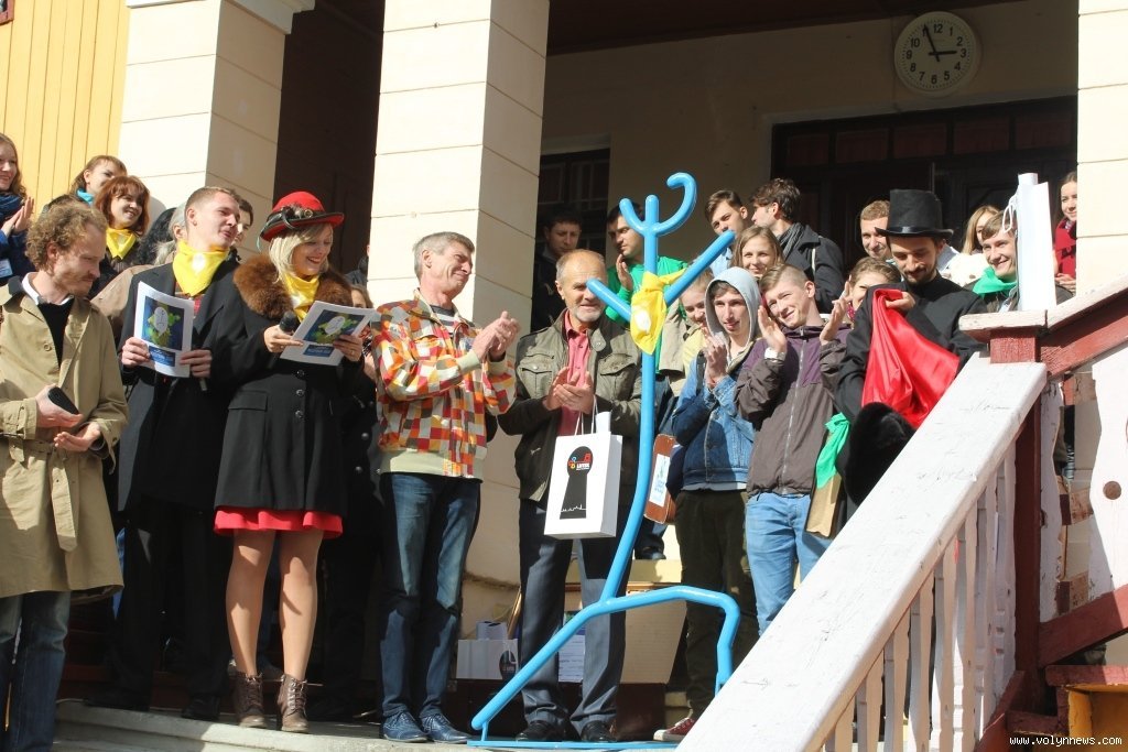 Після церемонії відкриття учасники фестивалю попрямували слідом за вішаком у напрямку арт-галереї «Луцьк», де відбудеться виставка театрального плаката.