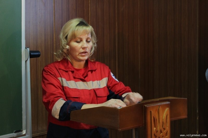 Своєю чергою, лікар станції швидкої медичної допомоги Луцька Алла Мельничук розповіла школярам про те, яку медичну допомогу потрібно надати людям, які постраждали від опіків різних видів. Важливість лекції вона пояснила тим, що діти мають знати, що робити, аби допомогти, а не нашкодити постраждалим.