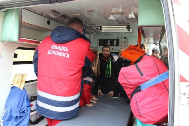На початку зустрічі школярі мали нагоду подивитися на автомобільну техніку та обладнання кожного з підрозділів і більше дізнатися про те, як працюють рятувальники та правоохоронці Луцька.