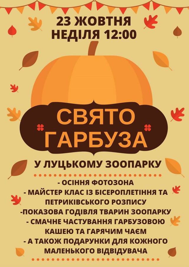 Всіх охочих відвідати свято гарбуза запрошують у Луцький зоопарк, - йдеться на сторінці закладу у Фейсбук.
