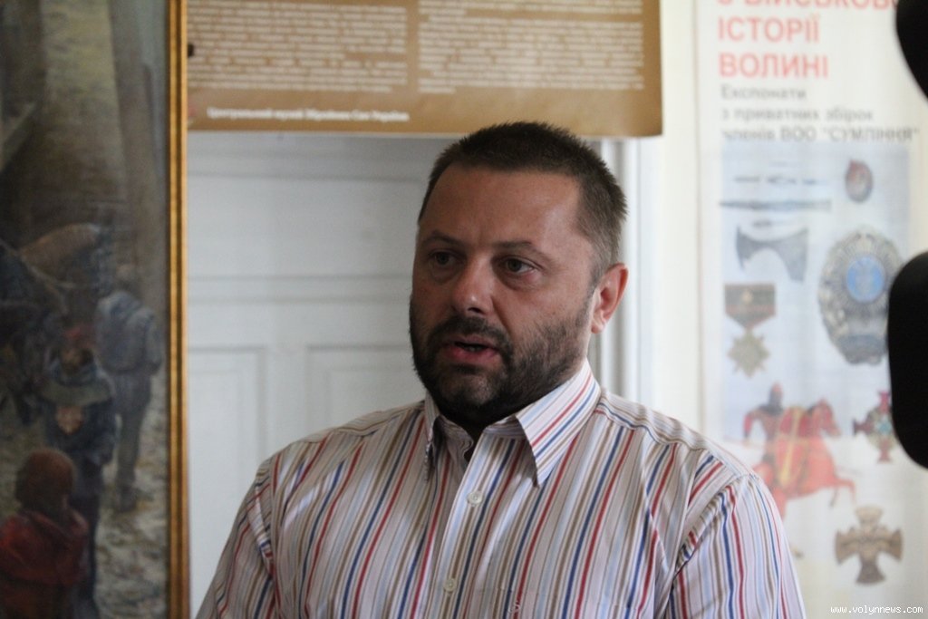 Свою картину під назвою «З’їзд монархів» сьогодні, 30 серпня, у Волинському регіональному музеї українського війська та військової техніки представив її автор – Андрій Серебряков.