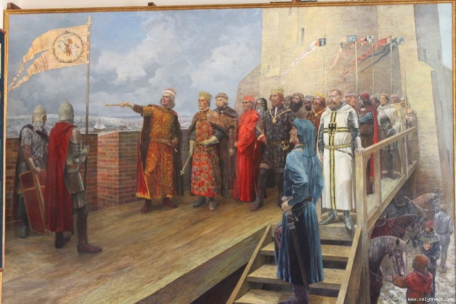 На полотні зображені всі учасники з’їзду 1429 року: це і представники Візантійської імперії, і монархи західноєвропейських держав, і делегат Папи Римського, і, звичайно, Великий Князь Литовський Вітовт.