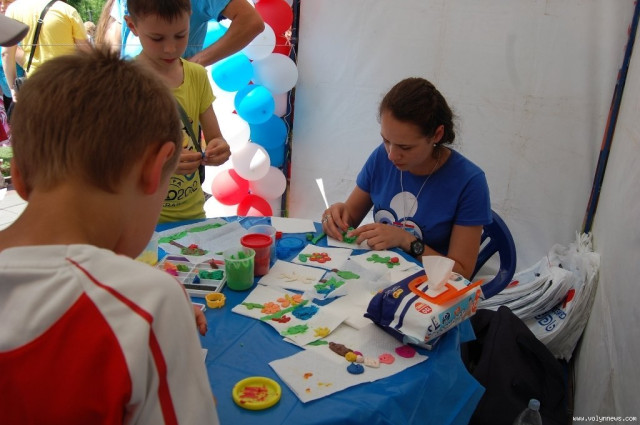 Саме там діти мали змогу розважитися у куточках дитячої творчості, пограти у баскетбол та волейбол, спробувати себе у ролі архітектора та отримати свій портрет у павільйоні «Веселі шаржі». А в інших наметах організатори свята робили дітлахам модні зачіски, оригінальний аквагрим та миттєве тату. Окрім того, малеча могла пострибати у батутному містечку.