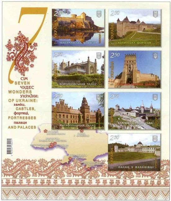 Так, 29 листопада ввелись в обіг та вважаються дійсними для оплати послуг поштового зв'язку в усіх відділеннях поштового зв'язку поштові марки: № 1253 «Аккерманська фортеця», № 1254 «Воронцовський палац», № 1255 «Митрополичий палац», № 1256 «Хотинська фортеця», № 1257 «Луцький Верхній замок», № 1258 «Кам’янець-Подільська фортеця», № 1259 «Палац у Качанівці» малого аркуша № 17 «Сім чудес України: замки, фортеці, палаци».