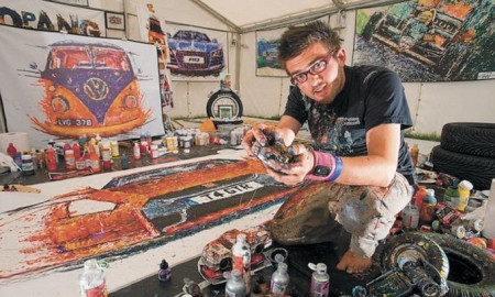 28-річний британський художник Ян Кук має унікальний стиль малювання: він занурює у фарбу іграшкові машинки з дистанційним керуванням і направляє їх на полотні так, аби виходило зображення.
