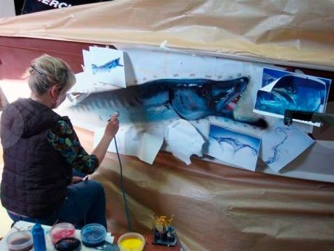 «Якось я працювала з автомобілем, капот якого розтрощила бурулька. Але цей мінус став чудовим доповненням до зображення піраній, і вийшло справді здорово», ‒ ділиться майстриня.
